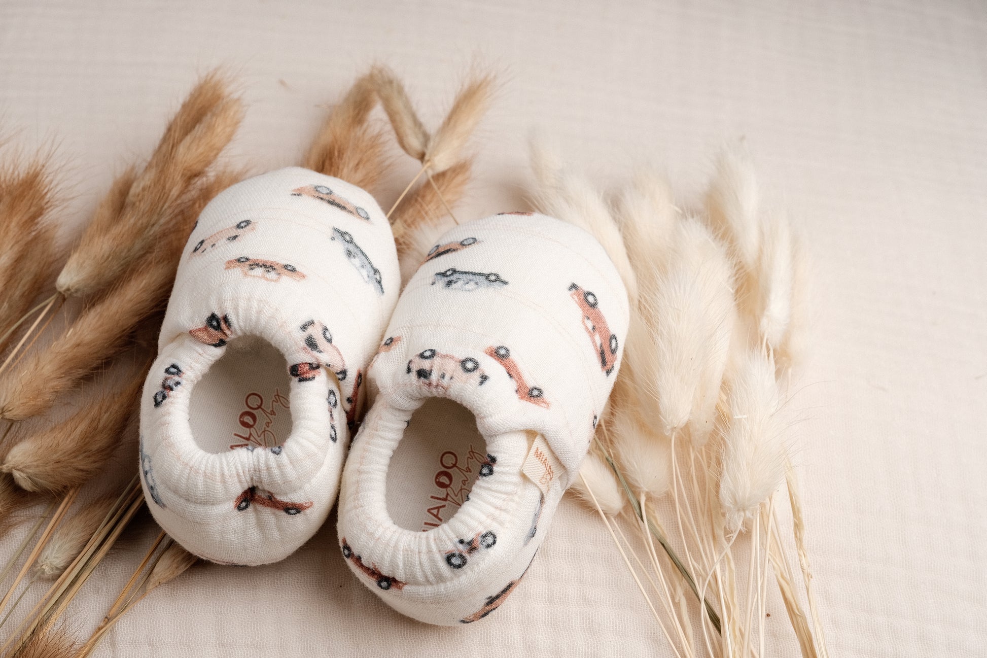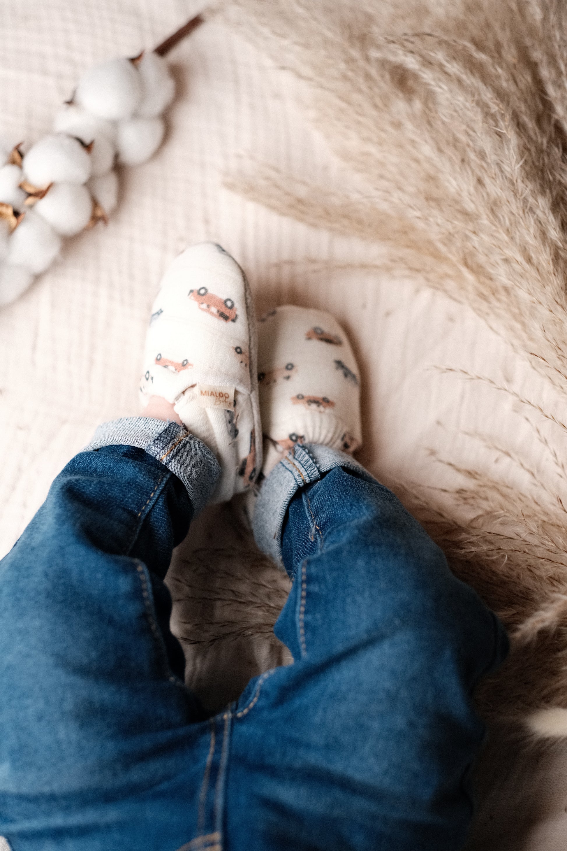 Dieser handgefertigte Schuh von Mialoo Baby ist ideal für Babys und Kleinkinder. Hergestellt aus besonders weicher, hautschonender Baumwolle (100 %) und veredelt mit einem zarten Musselin-Obermaterial, bietet er optimalen Komfort. Die rutschhemmende Sohle aus strapazierfähigem Kunstleder sorgt für sicheren Halt bei den ersten Schritten. Perfekt für den Alltag – bequem, sicher und liebevoll verarbeitet.