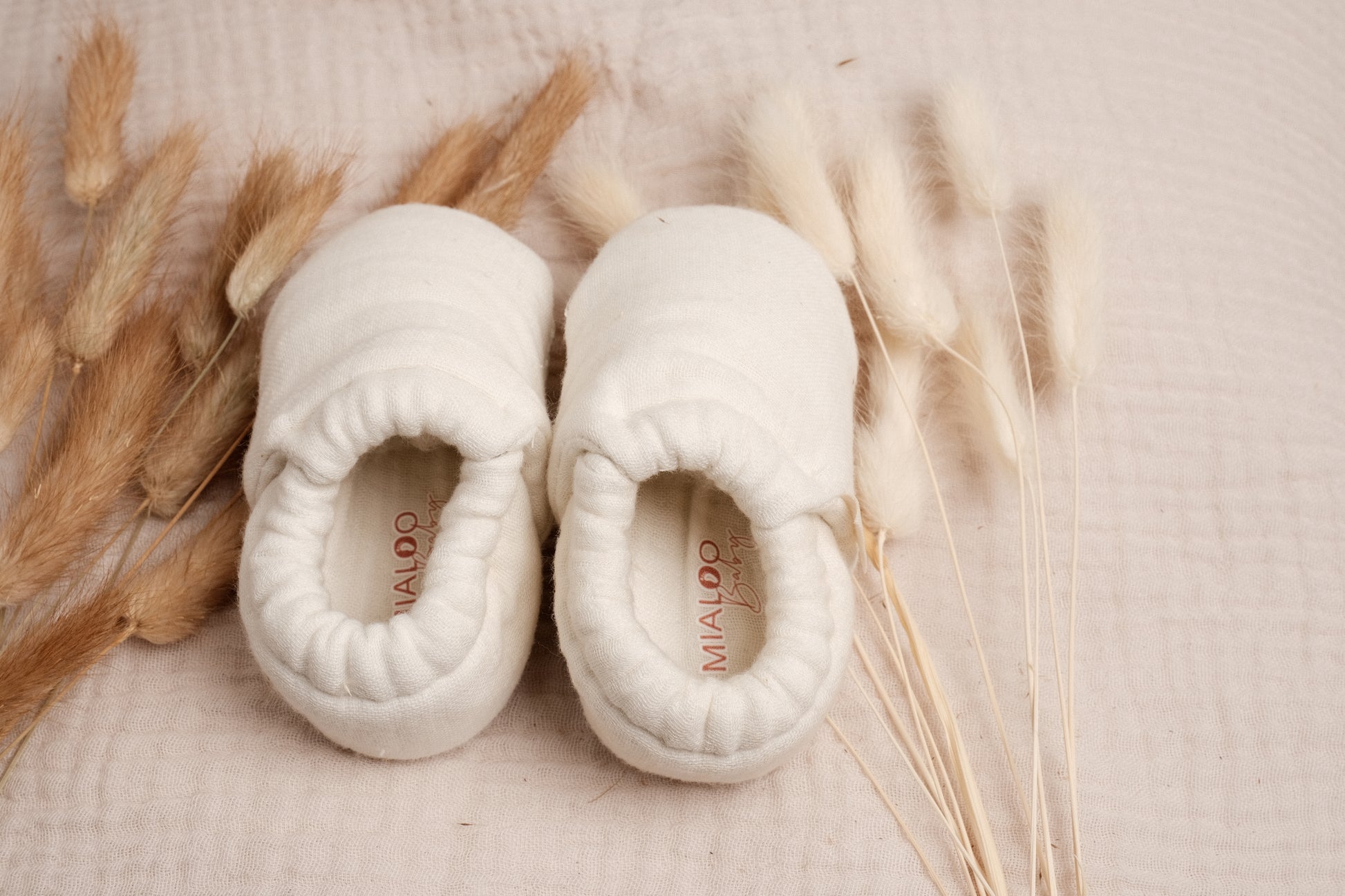 Dieser handgefertigte Schuh von Mialoo Baby ist ideal für Babys und Kleinkinder. Hergestellt aus besonders weicher, hautschonender Baumwolle (100 %) und veredelt mit einem zarten Musselin-Obermaterial, bietet er optimalen Komfort. Die rutschhemmende Sohle aus strapazierfähigem Kunstleder sorgt für sicheren Halt bei den ersten Schritten. Perfekt für den Alltag – bequem, sicher und liebevoll verarbeitet.